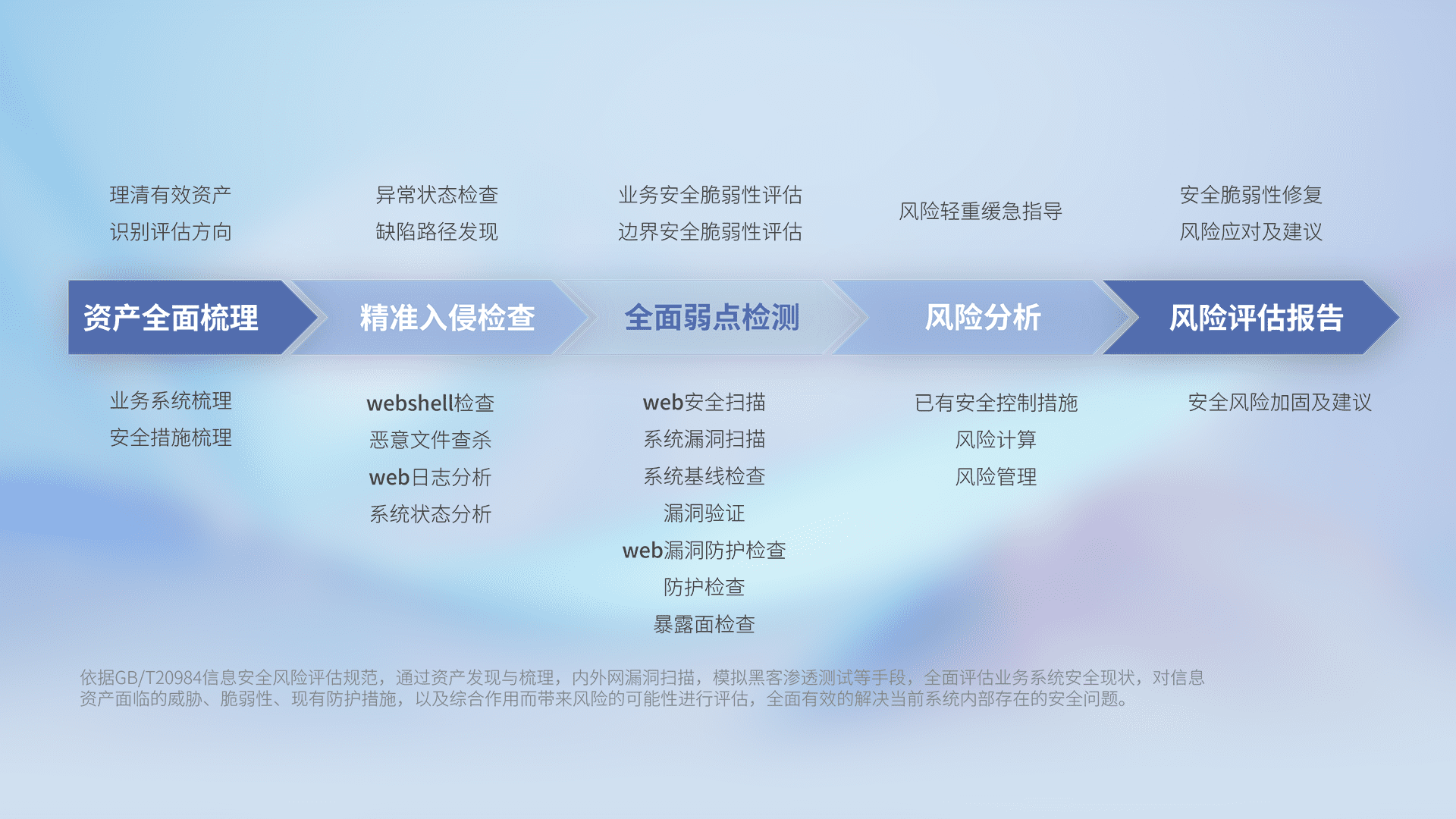针对客户行业特性,,以专业的安全服务+多厂商联合解决方案提供专属的一站式安全管理服务,,,,帮助客户全面感知网络空间威胁,,,,基于识别、、、、检测、、分析、、防护、、、、监测、、响应的服务理论模型,,,从方案咨询、、、、集成交付、、、评估验证、、、优化加固、、、、运维运营,,,致力于为客户提供完整的闭环管理式安全服务。。。以实战经验为客户打造高抵御风险的安全体系,,帮助客户发现威胁、、、、对抗威胁、、、处置威胁,,不断积累安全对抗能力,,持续保障数字化安全。。